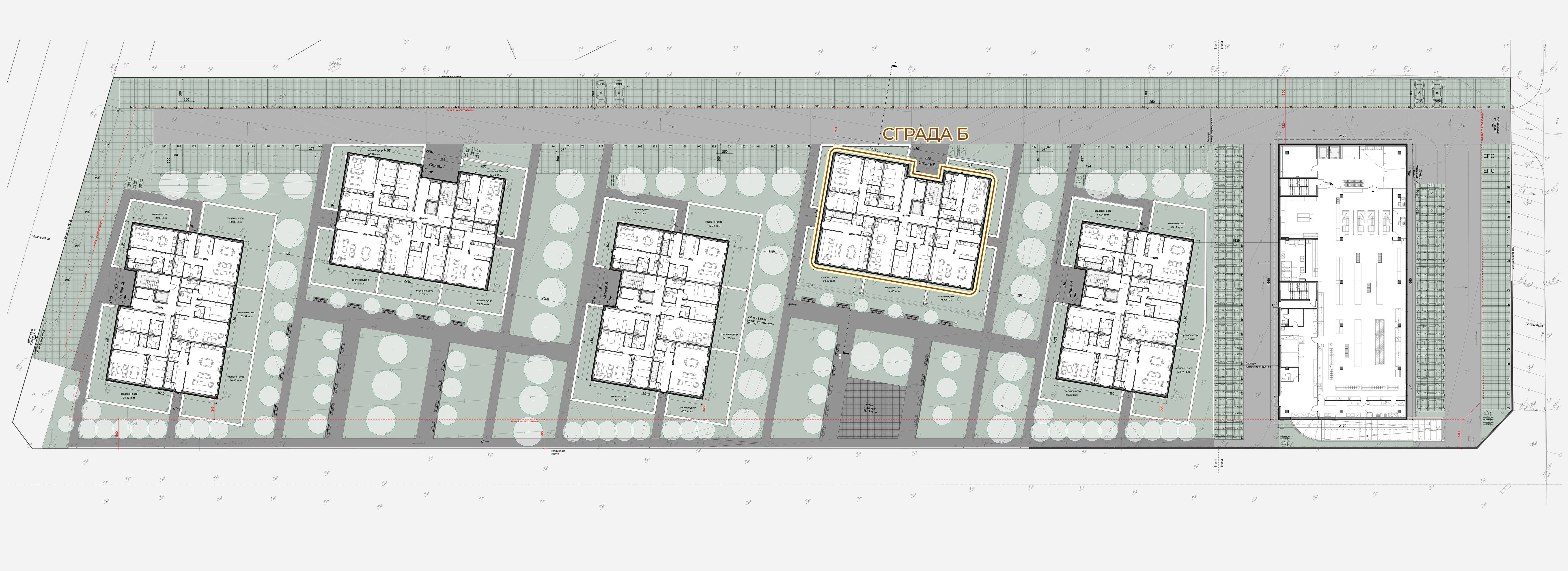 Локация – Сграда Б се намира между сгради А и В, в непосредствена близост до обособените кътове за социални дейности.
